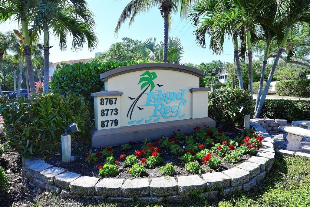 This residence is being sold furnished (some items excluded). Open floor plan. (2070 Sq feet; builders floor plan), two spacious bedrooms, 2 ½ baths, office area, laundry, large enclosed Lanai. Upgrades include new flooring and newer air conditioner. Enjoy picturesque Bay views to watch the sunrise and across the street you can watch sunsets on the Gulf of Mexico. This larger floor plan has full Bay views. Residents of Island Reef enjoy boat docks (lifts allowed), beach, two heated pools, tennis, pickleball, two fitness rooms, saunas, shuffleboard courts, billiards, library, clubhouse, social room, gas grills, bicycle and kayak storage. The carport is just a few steps from the front door. Guest Parking. Close to two of Siesta Key’s popular restaurants. Free trolley to Siesta Village. Monthly Rentals (8 leases a year), pet friendly (30 lbs.), on-site management and rental program.